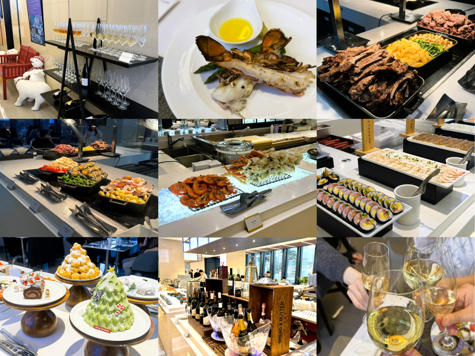 엘리베이터에서 내리자마자 준비된 웰컴 드링크가 분위기를 부드럽게 열어주었습니다. 개별로 제공된 미니 랍스터와 함께, 양갈비·소고기 스테이크·훈제 연어 등 다채로운 메뉴를 뷔페 형식으로 즐길 수 있었습니다. 마무리로는 크리스마스 시즌에 어울리는 아기자기한 디저트까지 더해져 식사의 만족도를 높였습니다. 와인과 함께한 식사 속에서 웃음과 이야기가 끊이지 않았고, 모두가 만족한 따뜻한 연말의 밤을 보냈습니다.